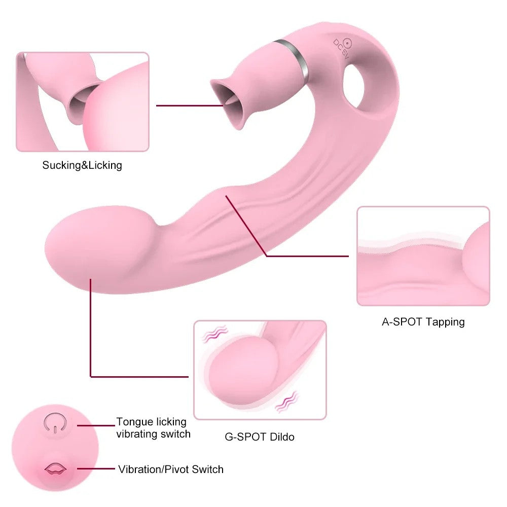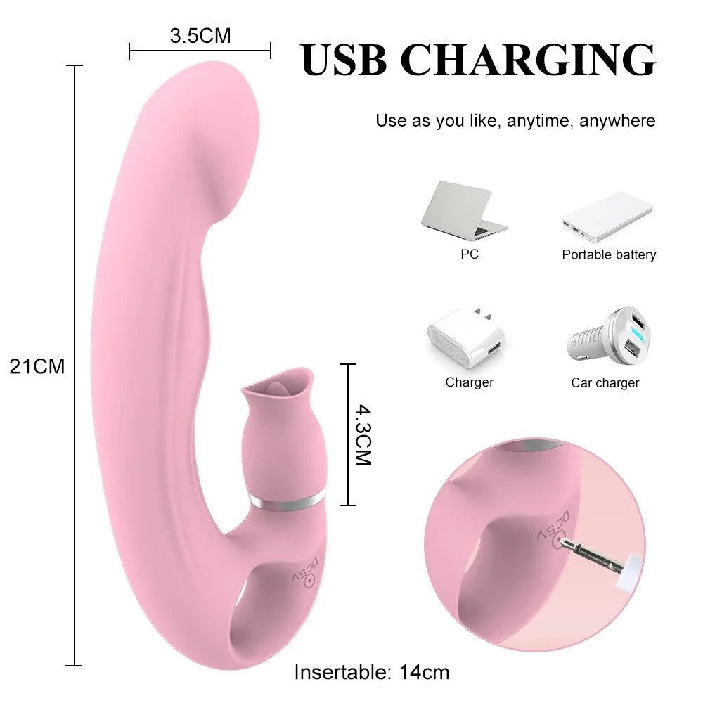 Vibrador 2 en 1. Lame el clítoris. Estimula el punto G. Estimula el clítoris. Te proporciona el amor acelerado que deseas. Estimula el punto G a través del glande. Estimula el clítoris. Te permite alcanzar el clímax al instante y experimentar un placer sin precedentes.