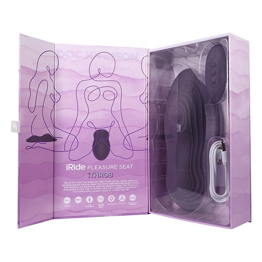 ¡Súbete a dar un paseo! El iRide Throb, con su diseño de sillín, tiene dos lados para pedalear: uno pulsante y otro vibratorio. Fabricado en silicona de grado médico, ambas funciones se activan con motores silenciosos pero potentes. El iRide se recarga con el cable incluido y es completamente impermeable. Incluso incluye un control remoto inalámbrico para que puedas usar las manos libres.